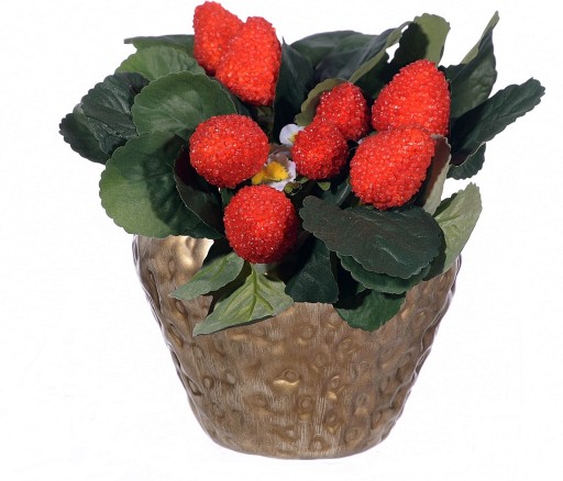 ИСКУССТВЕННАЯ КЛУБНИКА ЦВЕТЫ ФРУКТЫ ЛИСТЬЯ В ГОРШКЕ