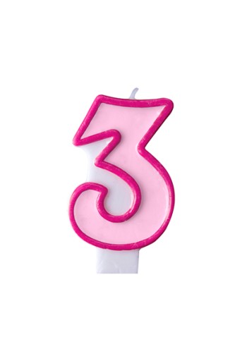 Świeczka urodzinowa Cyferka 3 w kolorze różowym, rozmiar 7 centymetrów. Każde urodziny to świetna okazja do świętowania! Piękna świeczka urodzinowa będzie niesamowitą atrakcją.