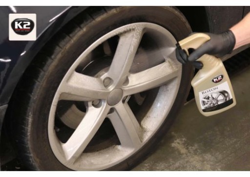 K2 ROTON w spektakularny sposób usuwa wszelkie uporczywe zabrudzenia, w tym osad z klocków hamulcowych i zabrudzenia drogowe, czego efektem jest zabarwienie naniesionego płynu na czerwono (krwawienie). Mycie felg za pomocą płynu jest szybkie, efektywne i skuteczne i nie wymaga wysiłku. Brud jest usuwany bez ryzyka zarysowania czyszczonej powierzchni.