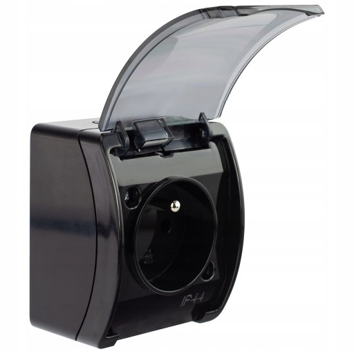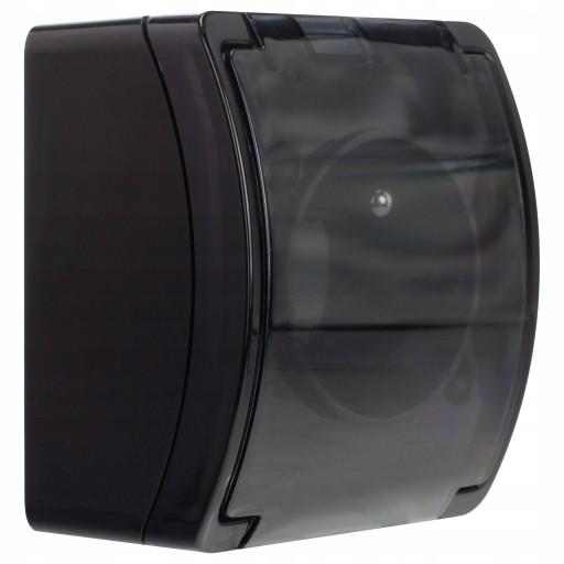 Gniazdo pojedyncze hermetyczne IP44 natynkowe czarny/przezr.