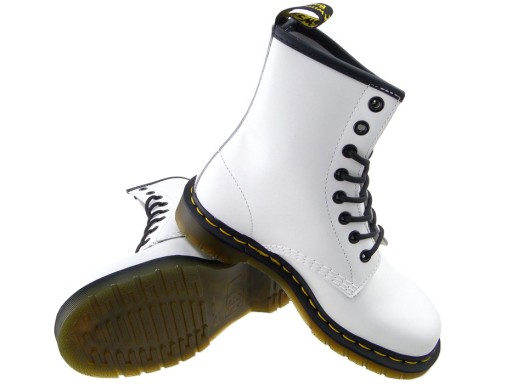 Oryginalny, kultowy model butów Dr. Martens 1460 w nowym, białym kolorze.