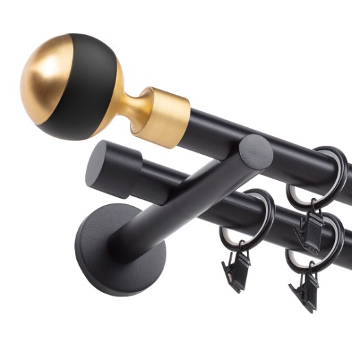 KARNISZ METALOWY CZARNY PODWÓJNY 19mm 180cm WZORY