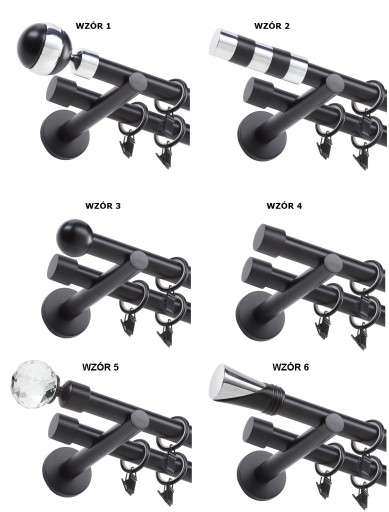 KARNISZ METALOWY CZARNY PODWÓJNY 19mm 300cm WZORY