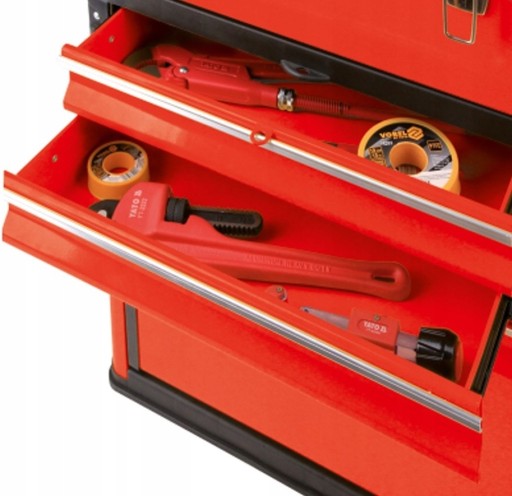 - W szufladach można umieszczać tacki narzędziowe Yato z gotowymi zestawami narzędzi