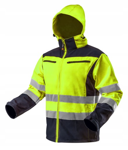 Kurtka softshell NEO o intensywnej widzialności to praktyczne rozwiązanie zwiększające bezpieczeństwo użytkownika, polegające na sygnalizowaniu jego obecności w każdych warunkach oświetlenia dziennego jak i w ciemności w oświetleniu światłami pojazdów. Wykonana z wysokiej jakości wodoodpornego, wiatrochronnego i oddychalnego materiału softshell. Lekka, wygodna, a zarazem ciepła doskonale nadaje się do użytkowania w chłodne i deszczowe dni. Zintegrowane regulowane ściągacze w dolnym szwie oraz ściągacze na rzepy przy wlocie rękawów pozwalają zachować ciepło przy maksymalnym komforcie użytkowania. Kurtkę wyróżnia użycie ciemnych kolorów w najbardziej narażonych na ubrudzenie miejscach. Odpinany kaptur po wewnętrznej stronie jest wykończony miłym i ciepłym polarem. Gwarantem jakości jest certyfikat europejski oraz wykonanie zgodne z normą EN ISO 13688:2013. Marka NEO spełnia oczekiwania profesjonalistów