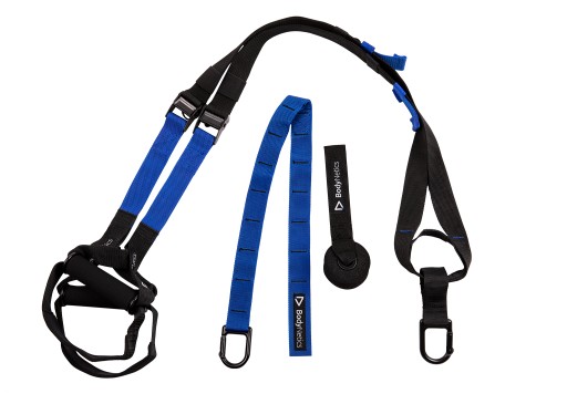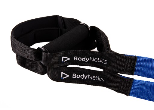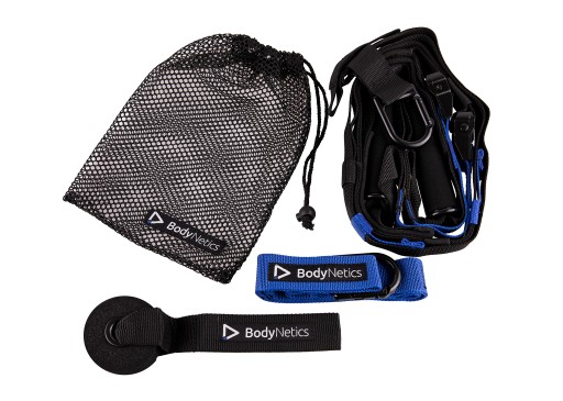 Taśmy Treningowe BodyNetics to uniwersalne urządzenie do treningu wszystkich partii ciała z wykorzystaniem ciężaru osoby ćwiczącej. Uniwersalność i skuteczność tej metody treningowej spowodowała, że Taśmy Treningowe są szeroko wykorzystywane przez profesjonalnych sportowców, amatorów oraz fizjoterapeutów. Dzięki dołączonemu zaczepowi możliwy jest montaż do drzwi, a za pomocą taśmy przedłużającej i karabińczyków do wielu miejsc zarówno w pomieszczeniach jak i na zewnątrz. Kotwica do drzwi zabezpieczona jest pianką neoprenową, chroniącą powierzchnię drzwi przed zarysowaniami. Wzmocniona konstrukcja Taśm BodyNetics sprawia, że mogą wytrzymać obciążenie do 350 kg. Komfortowe uchwyty pokryte pianką neoprenową zapewniają wygodę, higienę i bezpieczeństwo. Regulacja długości ramion oraz taśmy przedłużającej pozwala indywidualnie dostosowywać parametry do użytkownika. Funkcjonalny pokrowiec w komplecie.