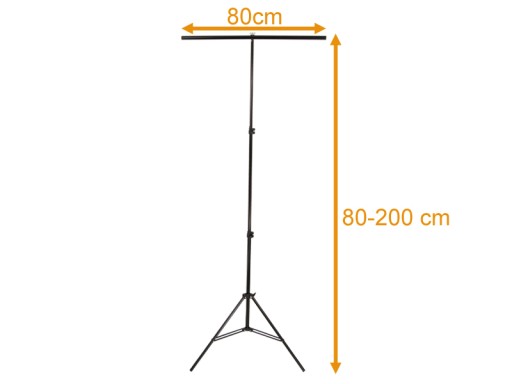 Dzięki niemu wygodnie zamocujemy tło na wysokości maksymalnie 200 cm (optymalna wysokość 185 cm), natomiast minimalna wysokość stojaka to 80 cm.