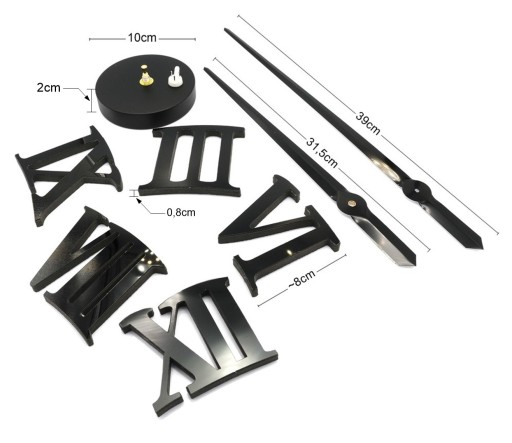 Montaż zegara jest szybki i wygodny. Tarcza ze wskazówkami jest do zamontowania na haczyk. Elementy dekoracyjne montuje się do ściany za pomocą taśmy montażowej. Każdy element jest podklejony taśmą. Zegar posiada szablon dzięki czemu w precyzyjny sposób rozmieścisz elementy na ścianie.