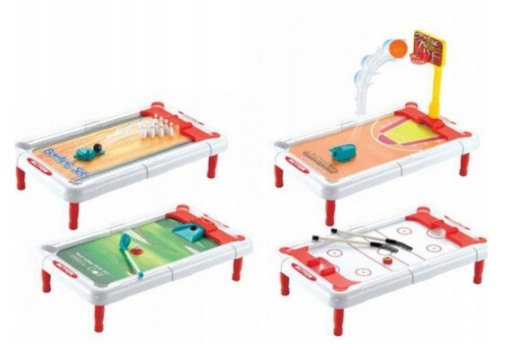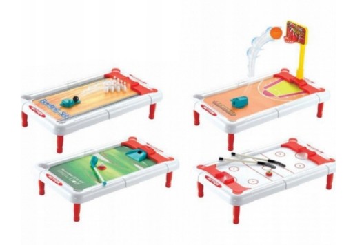 Zestaw ze stołem, wymiennymi planszami i akcesoriami, dzięki którym możemy zagrać w 4 różne gry!