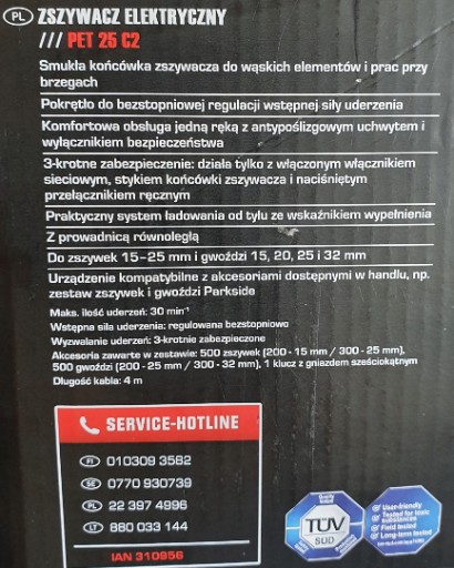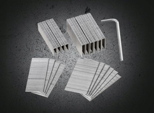 - Urządzenie kompatybilne z akcesoriami dostępnymi w handlu, np. zestaw zszywek i gwoździ Parkside
