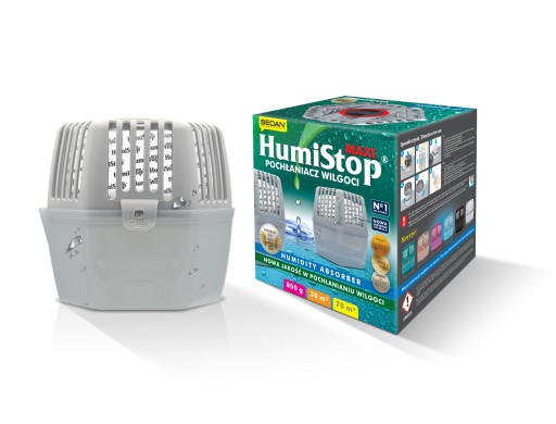 Kontroluje i samodzielnie reguluje wilgotność w pomieszczeniach do 30 m² ( 70m³). Usuwa nadmiar wilgoci. Tylko oryginalny HumiStop zapewnia skuteczne i bezpieczne działanie.