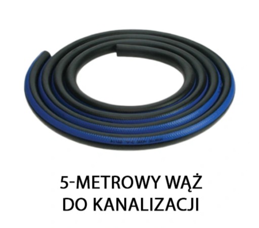 - 5-metrowy elastyczny wąż do odprowadzania popłuczyn regeneracyjnych do kanalizacji wraz z zaciskiem montażowym