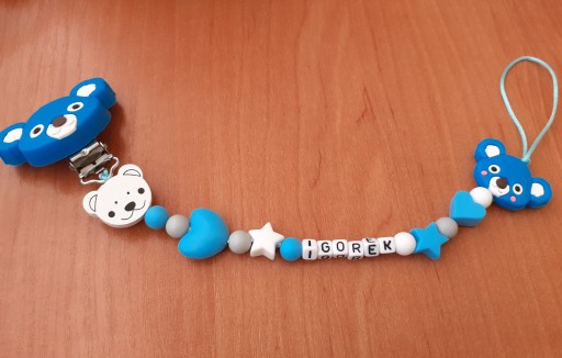 Zawieszki wykonane są na sznurku z koralików silikonowych 8-15mm, klipsy silikonowe,z drewnianych dodatkow oraz kokardki.