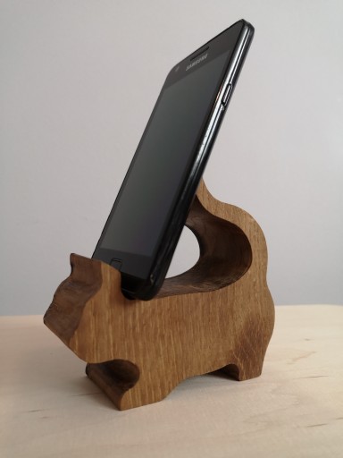 Stojak na telefon komórkowy, wykonany z drewna dębowego.