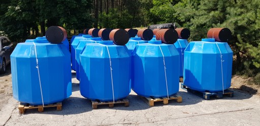 Wszystkie zbiorniki są w kolorze niebieskim co świadczy że materiał nie pochodzi z recyklingu.