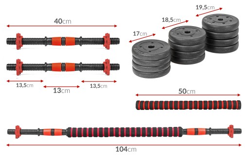 - 2 x gryfy 40cm/26mm (część chwytna ogumowana - 13 cm, część na ciężary 2x13,5 cm)