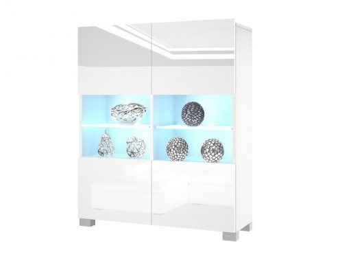 Meblościanka ROTO to stylowy zestaw mebli do salonu dostępny w różnych wariantach kolorystycznych aby zadowolić każdego domownika. Wiszące szafki posiadają półkę szklaną oraz szybę aby swobodnie wyeksponować zdjęcia lub inne przedmioty. Dodatkową opcją jest oświetlenie LED które rozświetli każde wnętrze lub salon.