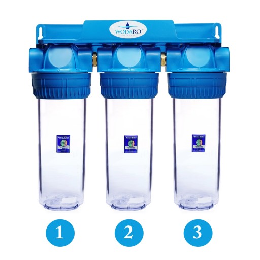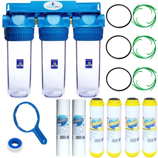 Kompletny 3 stopniowy filtr wstępny do montażu na wejściu instalacji do domu.
