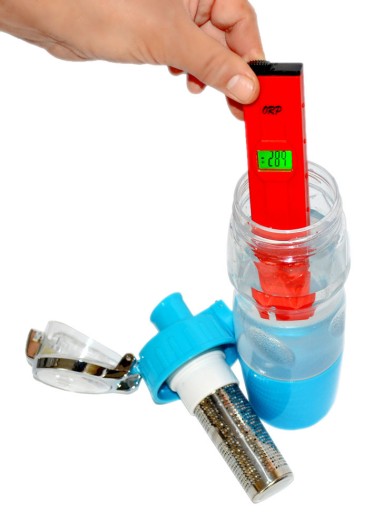 Wewnątrz butelki umieszczone są filtry jonizujące z unikatowymi kompleksami minerałów, które oczyszczają, konstruują zwykłą wodę, przekształca się w alkaliczny i dają jej negatywny potencjał redoks.