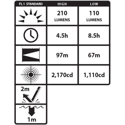 - dual-light (skupione i rozproszone jednocześnie) - 90 lm, 8,5 h, 93 m).