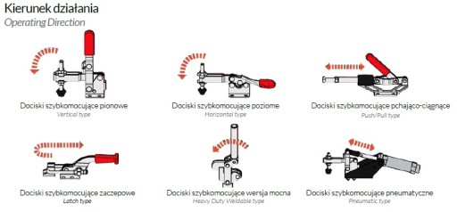 Dociski szybkomocujące są produktem wykorzystującym funkcję blokowania gwarantowaną w martwym punkcie systemu połączeń łączników i szpilek.