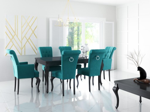 Nóżki w stole jak również krzesłach bardzo mocno nawiązują do stylu LUDWIK/GLAMOUR. Całość z krzesłami tworzy niesamowity zestaw, który jest jednym słowem kwintesencją smaku.