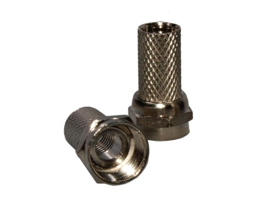 Złącze F wykonane z niklowanego metalu. Jest całkowicie odporne na korozję, dlatego można je stosować do montażu zarówno wewnątrz jak i na zewnątrz budynków. Brak korozji znacznie wydłuża okres eksploatacji wykonanego połączenia bez konieczności czyszczenia i konserwacji. Obniża też tłumienie połączenia.