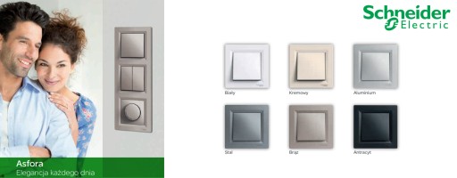 Produkty serii Asfora mają szeroki zakres funkcji (łączniki jednobiegunowe, łączniki świecznikowe, gniazda 2P+PE, gniazda TV/SAT/SAT, gniazda 2P+PE IP44 w ramce podwójnej). Sterujesz żaluzjami, dzięki podświetleniu z łatwością znajdziesz łącznik światła w ciemności, a także tworzysz nastrój w salonie czy sypialni, stosując ściemniacze. Masz dostęp do mediów (gniazda TVRSAT, gniazda RJ45) i cieszysz się doskonałą jakością dźwięku (gniazda głośnikowe, przewody estetycznie ukryte w ścianie). Osprzęt elektroinstalacyjny Asfora z tak szerokim zakresem funkcji ułatwia i uprzyjemnia życie. Asfora Schneider Electric to klasyka w dobrej cenie!