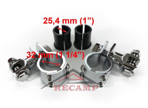 - zestaw zawiera: 2 mocowania do gmoli/ramy 32 mm (1 1/4 cala), specjalne sprężynujące podkładki, dodatkowe adaptery na gmole 25,4 mm (1 cal)
