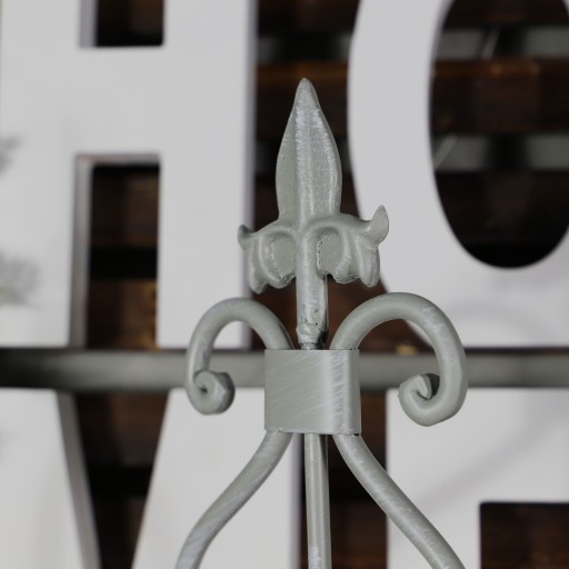 Przedmiot wykonany został z metalu,a więc materiału bardzo trwałego, pomalowanego na kolor szary przecierany.