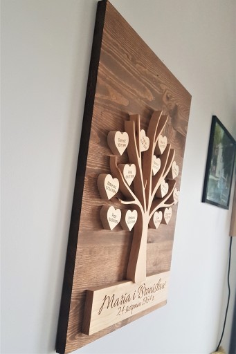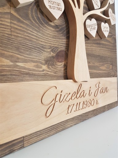 Bezcenna pamiątka w postaci drzewa genealogicznego Twojej rodziny. Wykonana z solidnego, litego drewna, może być przepięknym prezentem dla rodziców, dziadków. Rocznica ślubu, urodziny, Święta - powodów do wręczenia upominku może być wiele. Jedno jest jednak pewne - wzruszenie u obdarowanych.