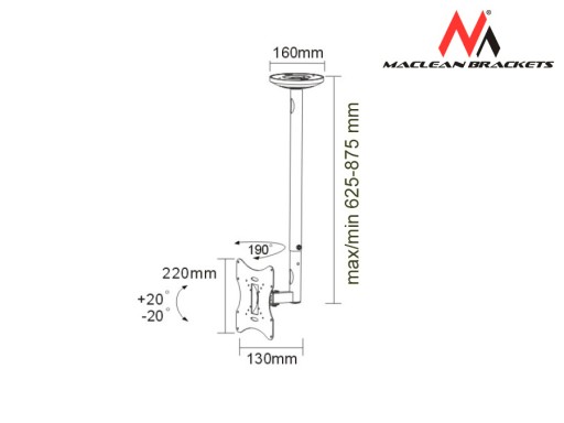 Uniwersalny uchwyt sufitowy do montażu telewizorów LCD, LED i plazmowych, oraz monitorów różnych marek o wadze do 30 kg i przekątnej ekranu od 23” do 42” (lub większych, pod warunkiem zgodności otworów montażowych VESA).
