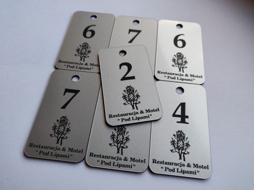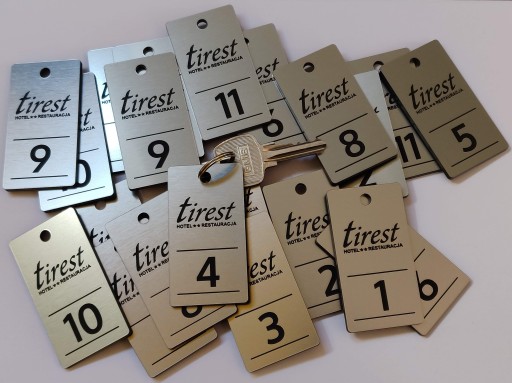 Na breloczkach możemy również wygrawerować logo, lub tekst (np. nazwę hotelu)