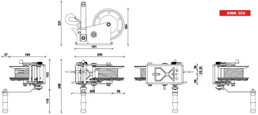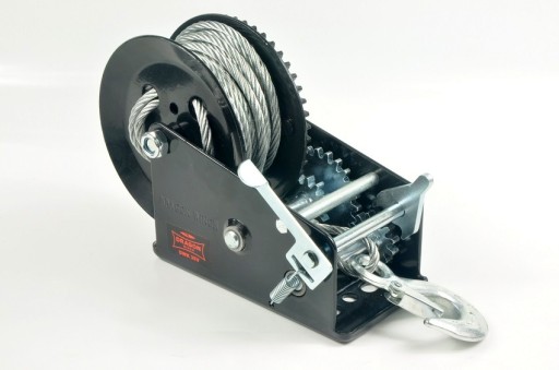 Wyciągarka o mocnej stalowej konstrukcji, przeznaczona do wyciągania małych łodzi, motorów, pojazdów oraz innych przedmiotów. Mechanizm zapadkowy. Hak z blokadą bezpieczeństwa.