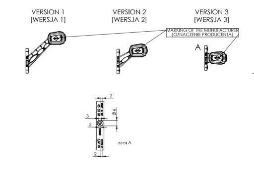- światło obrysowe przednie (białe) -> 1 dioda biała 6500 K (chłodnobiałe)