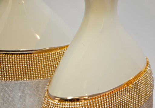 WYKONANY ZE SZLACHETNEJ CERAMIKI. PIĘKNIE ZDOBIONY. KOMBINACJA BIELI, ZŁOTA I KOLORU SZAMPAŃSKIEGO