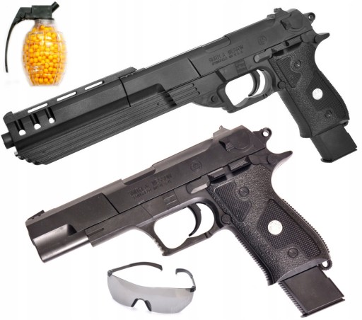 TEN PISTOLET POSIADA ZDEJMOWANĄ DŁUGĄ LUFĘ ZA NACIŚNIĘCIEM JEDNEGO PRZYCISKU, KUPUJĄC TEN PISTOLET OTRZYMUJESZ KLASYCZNY PISTOLET SMITH & WESSON WRAZ Z DŁUGĄ LUFĄ KTÓRA ZAPIĘTA TWORZY NIESAMOWICIE WYGLĄDAJĄCY SUPER DUŻY I MOCNY PISTOLET SMITH & WESSON A DODATKOWO W ZESTAWIE SĄ OKULARY!