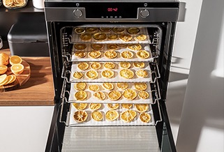 Nowa konstrukcja komory piekarnika gwarantuje idealną, równomierną dystrybucję ciepła w całym piekarniku. Dzięki temu możesz przygotować dużą porcję wypieków, mając pewność, że będą one równo zarumienione i wypieczone. W tym pojemnym piekarniku bez problemu zmieścisz ponad 100 muffinek jednocześnie! Możesz z łatwością suszyć grzyby i owoce oraz piec na kilku poziomach naraz.
