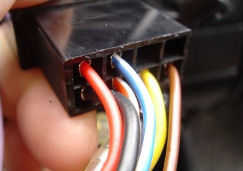 Zaś niebieski kabelek dostarczający zasilanie do separatora wpinamy w niebieski kabelek w kostce ISO. Dzięki temu separator będzie się włączał tylko gdy radioodtwarzacz jest włączony, a nie przez 24 h na dobę. Chociaż pobiera on znikome napięcie, nie ma sensu żeby był włączony cały czas. Dla tych którzy wybierają takie rozwiązanie wystarczy wpiąć się w przewód dostarczający "prąd" do radia, ale moim zdaniem nie ma to sensu.
