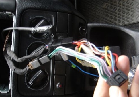 Po wyciągnięciu radia odsłania się nam plątanina kabli.