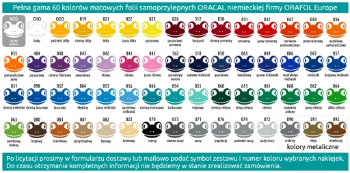 Po licytacji prosimy w formularzu dostawy lub mailowo podać symbol zestawu i numer koloru wybranych naklejek.
