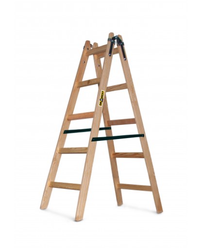 Drewniana drabina domowa idealnie sprawdza się przy codziennych pracach na wysokości wewnątrz budynku a w szczególności przy pracach związanych z malowaniem. Drabina jest wykonana z solidnych drewnianych elementów które uzupełniają ocynkowane wzmocnienia oraz solidny hak na wiadro. Wszystkie drewniane elementy są impregnowane co pomaga zatrzymać drabinę na wiele lat w niezmienionym stanie, bez sinizny czy oznak pleśni.