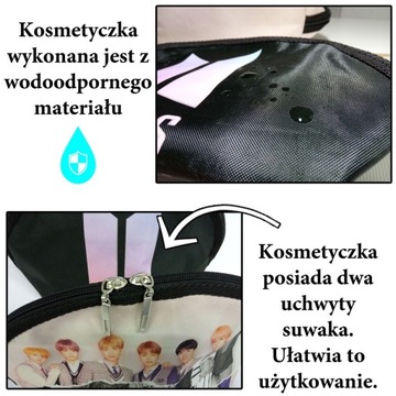 - Kosmetyczka wykonana z nieprzemakalnego i bardzo mocnego materiału.