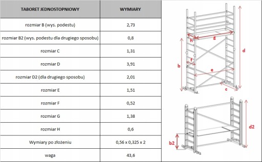 - Drabina posiada deklarację zgodności z europejską normą EN-1004 oraz certyfikat TUV