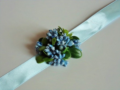 Na rękę wiązany jest za pomocą satynowej tasiemki o szerokości 25mm i długości ok. 40cm.