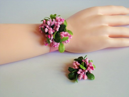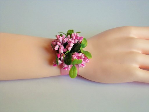 Na rękę wiązany jest za pomocą satynowej tasiemki o szerokości 25mm i długości ok. 40cm.
