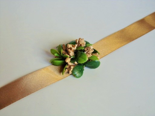 Na rękę wiązany jest za pomocą satynowej tasiemki o szerokości 25mm i długości ok. 40cm.