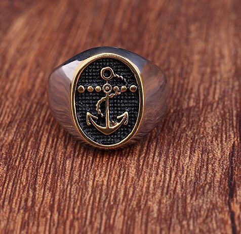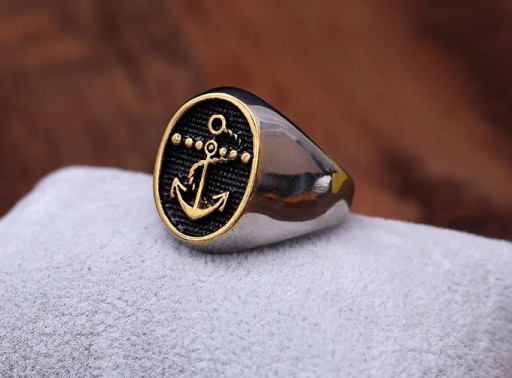 Sygnet Pierścień Kapitański - Kotwica - Rock Punk Skull Biker wykonany ze stali