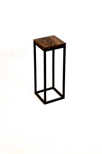 Wielofunkcyjny stojak na kwiaty i dekoracje wykonany ze stali i drewna.