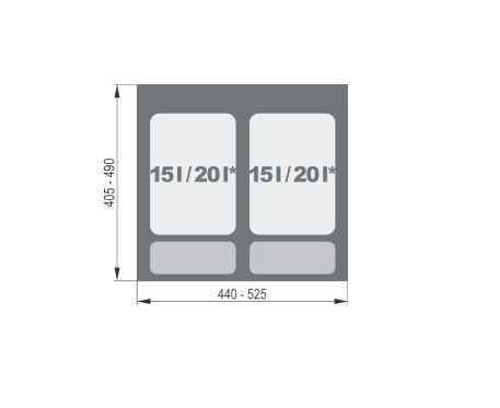 - pojemność wiader 2 x 15 l przy wysokości pojemnika H=300